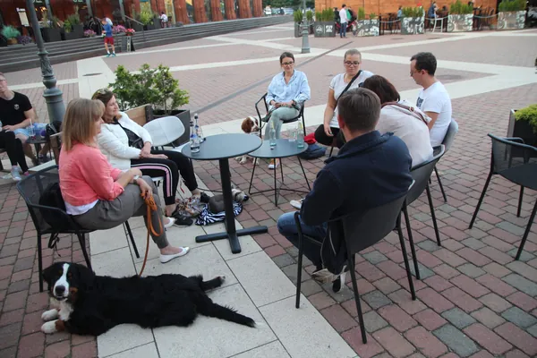 • Nauką spokojnego mijania czworonogów, ludzi na luźnej smyczy czy przebywania w grupie psów i ludzi